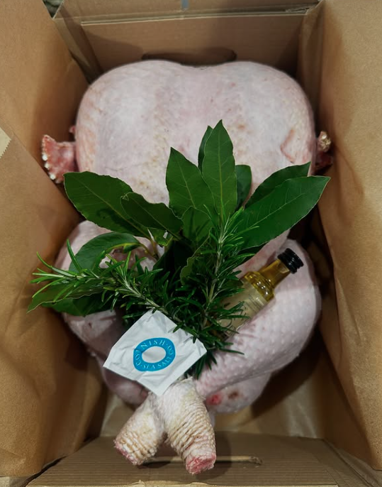 Their turkeys are hung and dry-aged for two weeks, unlike intensively reared supermarket turkeys that can be killed up to a month before Christmas and stored in carbon dioxide filled bags to keep them ‘fresh’. Traditionally game hanging turkeys produces enzymes which break down connective tissues, resulting in the very best flavour and texture.
