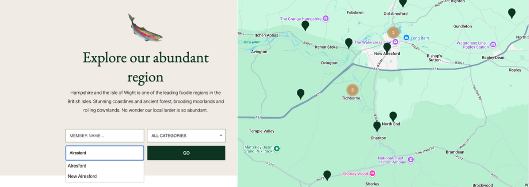 Search for Alresford (include New Alresford) and our members will appear with their map location, a brief description of each and a link to their profile.