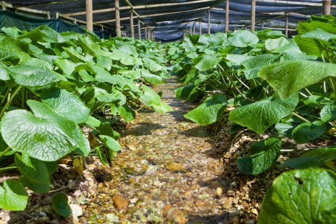 Wild wasabi grows alongside streams in the Japanese mountains taking advantage of nutrient rich water, mild temperatures and summer shade. It is these conditions that The Wasabi Company recreates on their Hampshire wasabi farms.