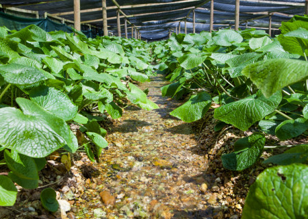 Wild wasabi grows alongside streams in the Japanese mountains taking advantage of nutrient rich water, mild temperatures and summer shade. It is these conditions that The Wasabi Company recreates on their Hampshire wasabi farms.