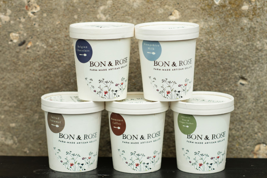 An artisanal gelato brand, Bon & Rose launched from Chilton Manor Farm – a family owned, and run, farm, in the beautiful Candover Valley.